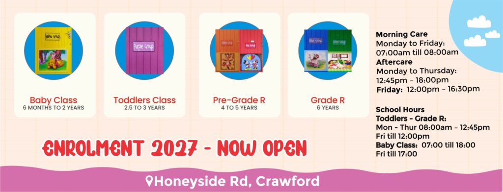 Our programs include Educare for babies from 6 months, as well as classes for Toddlers, Pre-Grade R, and Grade R.